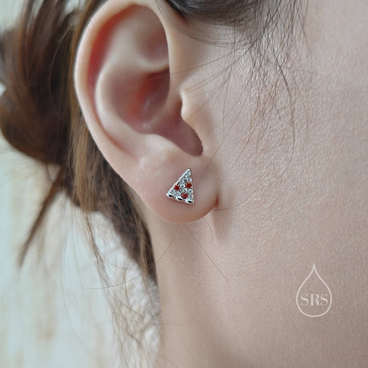 Tiny Pizza Slice CZ Stud Earrings in Sterling Silver, Silver Gold, Pizza Stud Earrings, Pizza Earrings, Silver Pizza Earrings