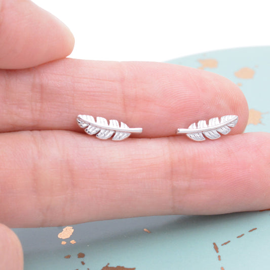 Sterling Silver Dainty Little Feather Stud Earrings - Silver or Gold, Cute, Fun, Whimsical and Pretty Jewellery