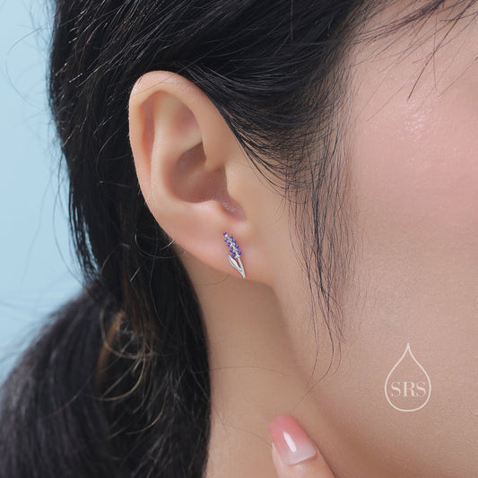 Internally Threaded Sterling Silver Purple Amethyst CZ Flower Flat Back/Screw Back/ Stud Earrings in Sterling Silver, Silver or Gold