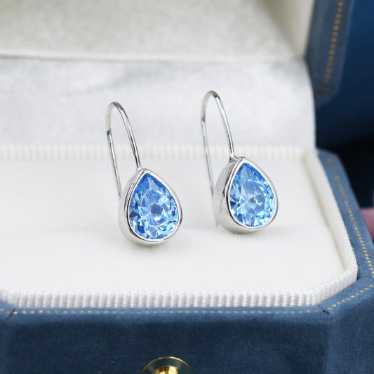 Sterling Silver Aquamarine Blue Droplet Drop Earrings in Sterling Silver, Silver or Gold, Chunky Pear Shape Hook Earrings