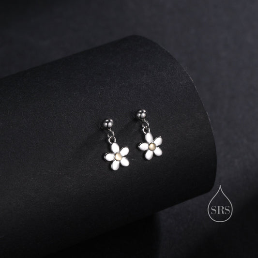 Sterling Silver Forget-me-not Flower Drop Stud Earrings, Partial Gold Plate, Dainty Dangle Forget Me Not Flower Earrings
