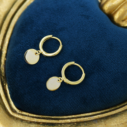 Sterling Silver Round Disk Drop Earrings, Silver or Gold, Huggie Hoop Earrings with Dangling Coins, Coin Earrings, Hoop Earrings, Disk Charm