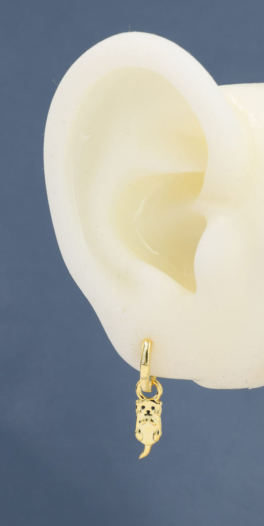 Dangling Otter Huggie Hoops in Sterling Silver, Silver or Gold, Otter Earrings, Detachable and Interchangeable