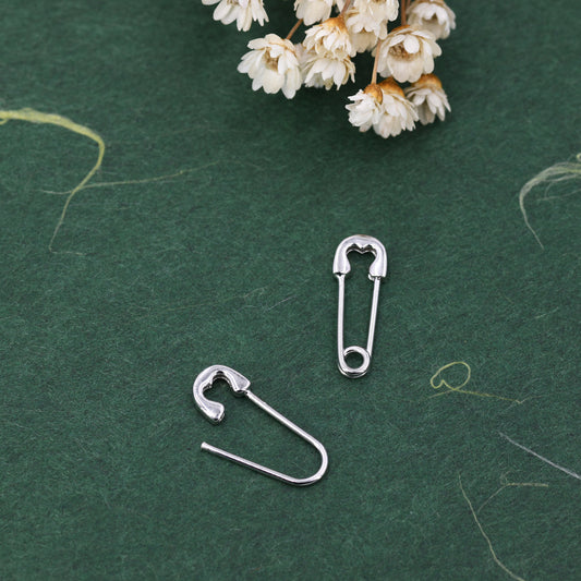 Safety Pin Hoop Earrings in Sterling Silver, Silver, Gold or Black Rhodium, Available in 3 Sizes, Safety Pin Earrings, Silver or Black