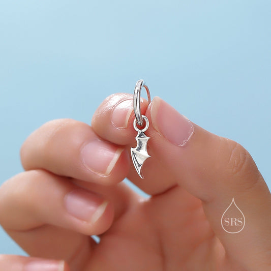 Bat Wing Huggie Hoop Earrings in Sterling Silver, Silver or Gold or Rose Gold, Demon Wing Earrings, Devil Wing Earrings, Detachable