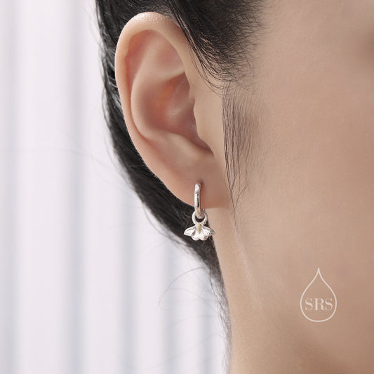 Sterling Silver Moth Huggie Hoops, Detachable Moth Butterfly Hoop Earrings, Moth Earrings