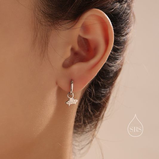 Sterling Silver Mismatched UFO and Alien Huggie Hoops, Silver, Gold or Rose Gold, Detachable Cute Alien UFO Hoop Earrings, Flying Saucer