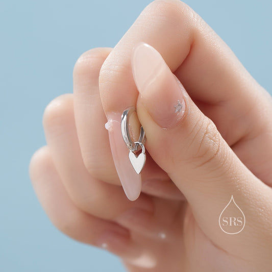 Sterling Silver Heart Huggie Hoops, Silver or Gold or Rose Gold, Detachable Tiny Heart Hoop Earrings, Heart Charm Dangle Earrings,