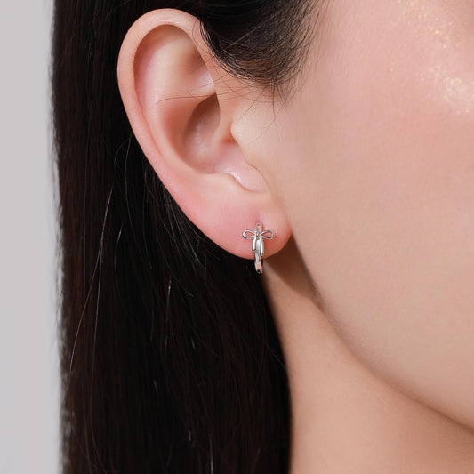 Dainty Ribbon Bow Huggie Hoop Earrings in Sterling Silver, Silver or Gold or Rose Gold, Ribbon Bow Earrings, Ribbon Bow Huggies