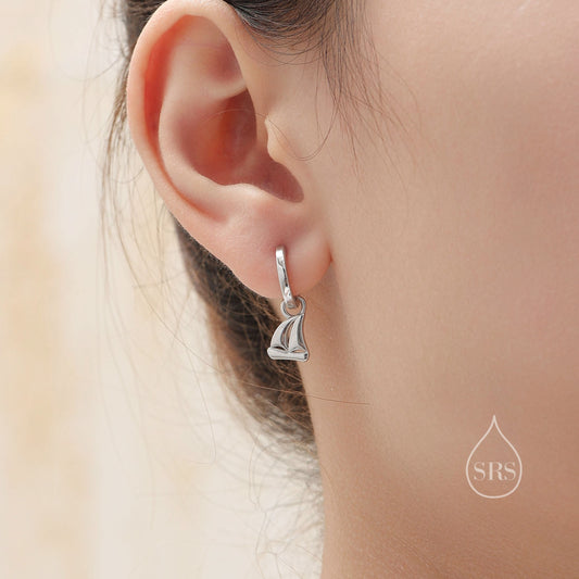 Sailing Boat Charm Huggie Hoop Earrings in Sterling Silver, Silver, Gold or Rose Gold, Boat Earrings, Sailing Boat Earrings, Detachable