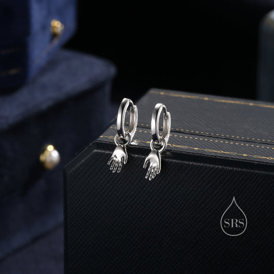 Sterling Silver Hand Huggie Hoops, Silver or Gold, Detachable Cute Hand Hoop Earrings, Palm Earrings