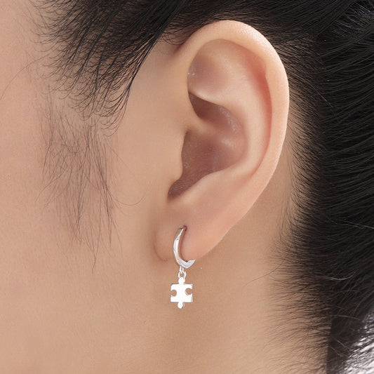 Sterling Silver Jigsaw Huggie Hoops, Silver, Gold or Rose Gold, Detachable Cute Jigsaw Hoop Earrings, Jigsaw Earrings
