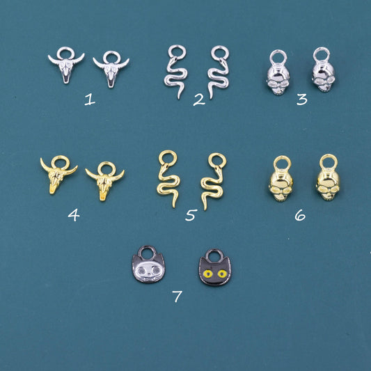 Halloween Charms for Huggie Hoops, Sold as a pair, Sterling Silver Charms for Earrings, Detachable, Silver or Gold or Rose Gold