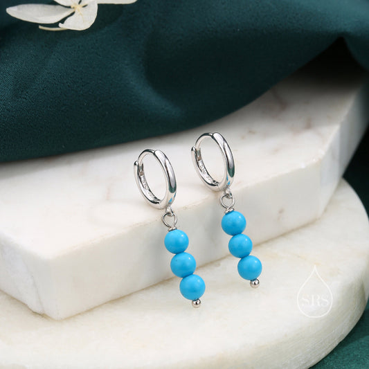 Genuine Turquoise Trio Huggie Hoop Earrings in Sterling Silver, Silver or Gold, Blue Turquoise Cluster Dangle Earrings, Three Turquoise Hoop