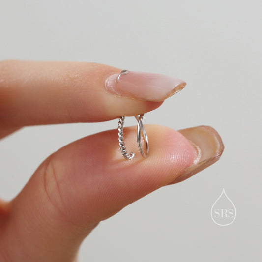 Single Piercing Spiral Hoop Earrings In Sterling Silver with Braided Details, Silver, Gold or Rose Gold, Minimalist Spiral Earrings