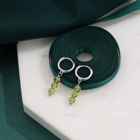 Genuine Peridot Trio Huggie Hoop Earrings in Sterling Silver, Peridot Crystal Cluster Dangle Earrings, Three Stone Hoops
