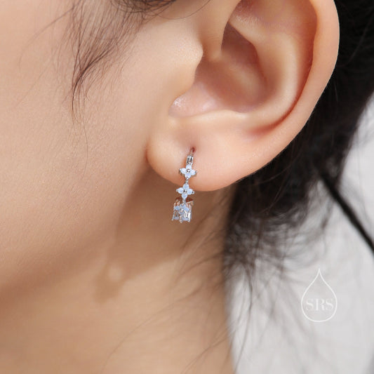 Tiny CZ Flower Huggie Hoop Earrings in Sterling Silver, Open Hoop Earrings, Pull-Through Threader Earrings, Half Hoop Earrings