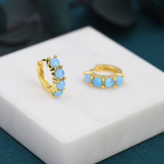 Blue Opal Huggie Hoops in Sterling Silver, 8mm Opal Hoops, Silver or Gold, Dainty Hoops Earrings, Opal Earring