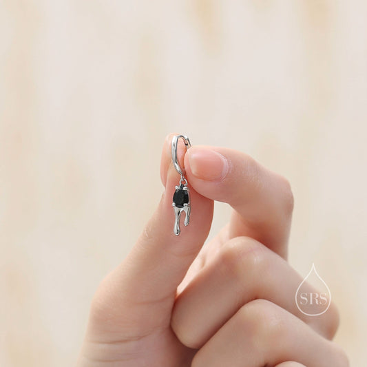 Tiny Black CZ Dangle Huggie Hoop in Sterling Silver, Silver or Gold, Skinny CZ Dangle Earrings, CZ Hoops