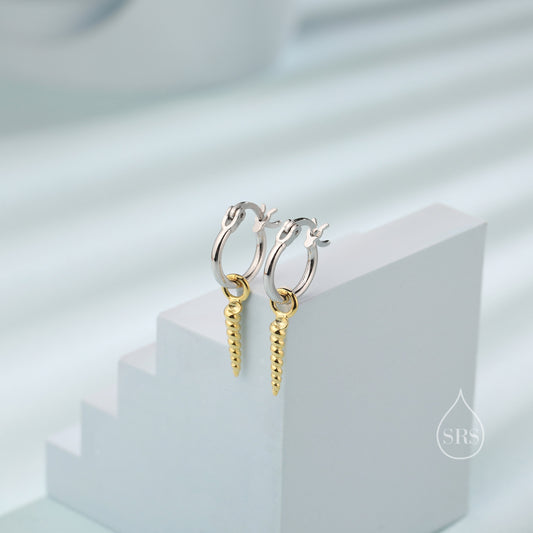 Unicorn Horn Huggie Hoop Earrings in Sterling Silver, Silver, Gold or Rose Gold Eye Hoops, Spiral Spike Hoops