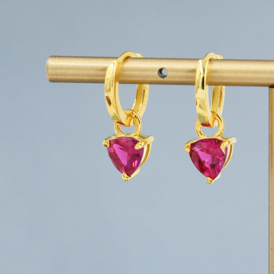 Sterling Silver Ruby Red Trillion Cut CZ Hoop Earrings, Silver, Gold, Triangle Dangle Hoop Earrings, Interchangeable Charm, July Birthstone
