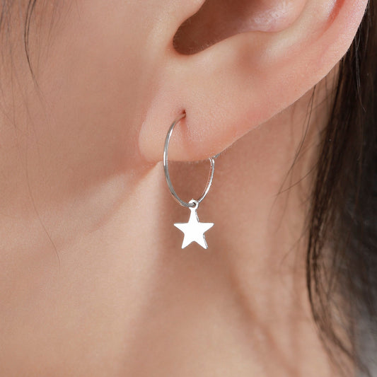 Very Minimalist Star Hoop Earrings in Sterling Silver, Silver, Gold or Rose Gold Finish, Two Sizes Available.