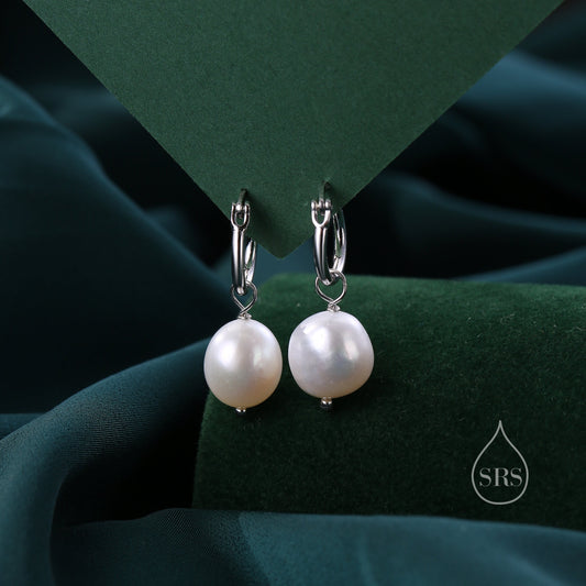 Natural Baroque Pearl Huggie Hoop Earrings in Sterling Silver, Silver or Gold, Detachable Baroque Pearl Charms