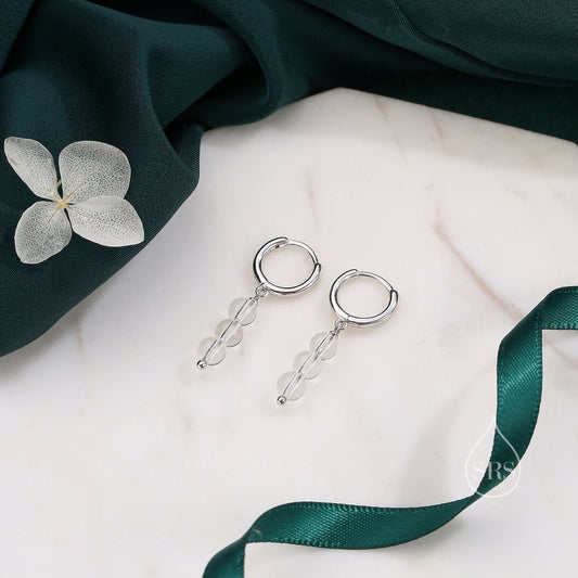 Genuine Clear Quartz Trio Huggie Hoop Earrings in Sterling Silver, Clear Quartz Cluster Dangle Earrings, Three Stone Hoops
