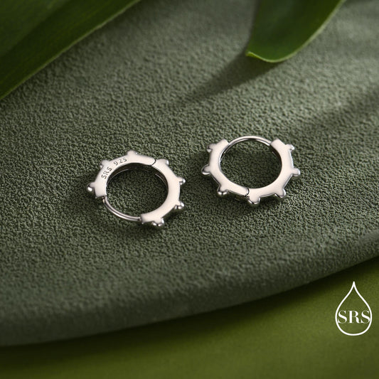 Dotted Huggie Hoop in Sterling Silver, 8mm Huggie Hoops, Geometric Beaded Hoop Earrings, Gold or Silver