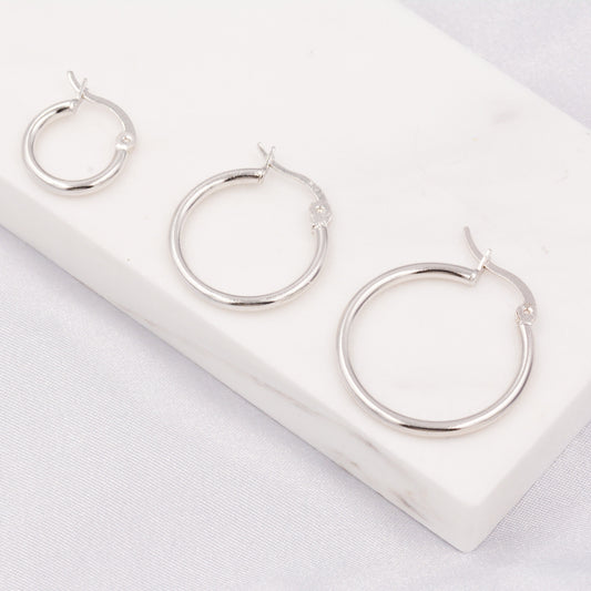 Minimalist Creole Hoop Earrings in Sterling Silver, 9mm 16mm 20mm, Lever Hoop Earrings, Simple Silver Hoops