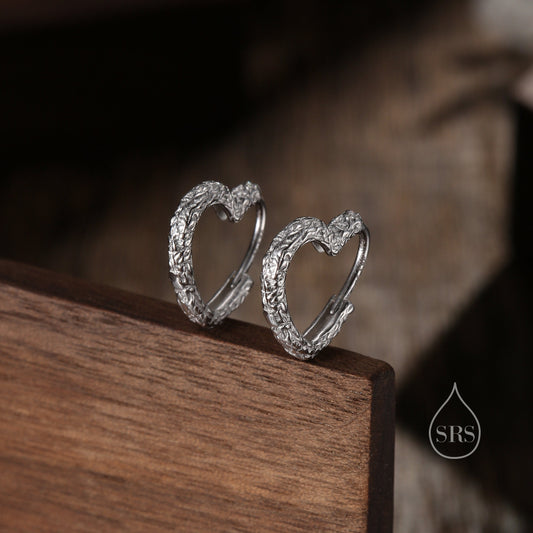 Hammered Finish Heart Huggie Hoop Earrings in Sterling Silver, Silver, Gold or Rose Gold, Minimalist Geometric Design