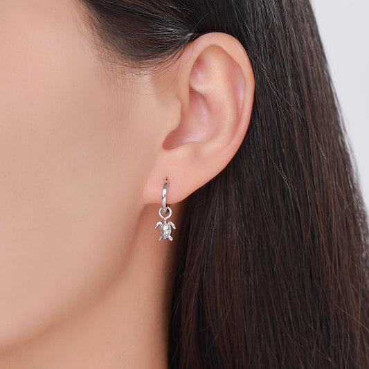 Sterling Silver Mismatched Sea Turtle and Starfish Huggie Hoops, Silver, Gold or Rose Gold, Detachable Turtle and Sea Star Hoop Earrings