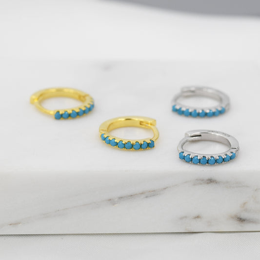 Turquoise Huggie Hoop in Sterling Silver, Silver or Gold, 6mm, 7mm, 8mm and 9mm Inner Diameter Hoop Earrings, Turquoise Earrings