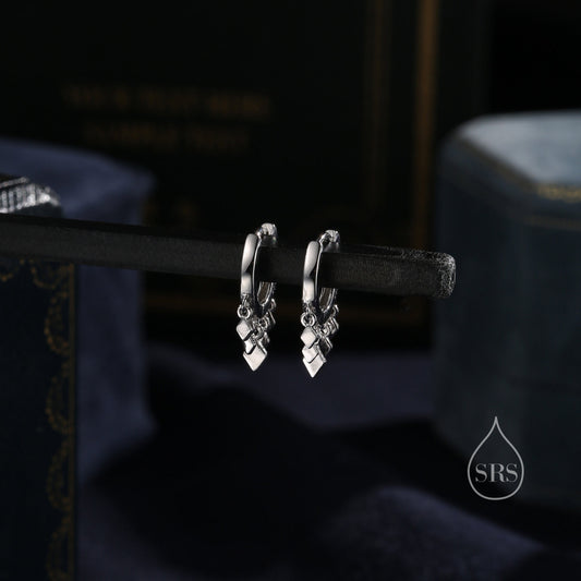 Sterling Silver Rhombus Charm Huggie Hoops, Silver, Gold or Rose Gold, Tassle Charm Huggie Hoops, Geometric Hoop Earrings