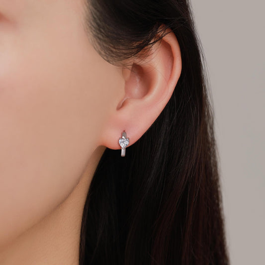Heart CZ Huggie Hoop in Sterling Silver, Silver or Gold, 8mm Inner Diameter, Stacking Earrings