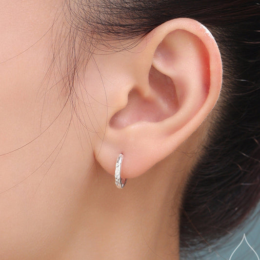 Olive Leaf Huggie Hoop in Sterling Silver, Two Way Huggies, Silver or Gold, 8mm Inner Diameter, Nature Inspired Earrings