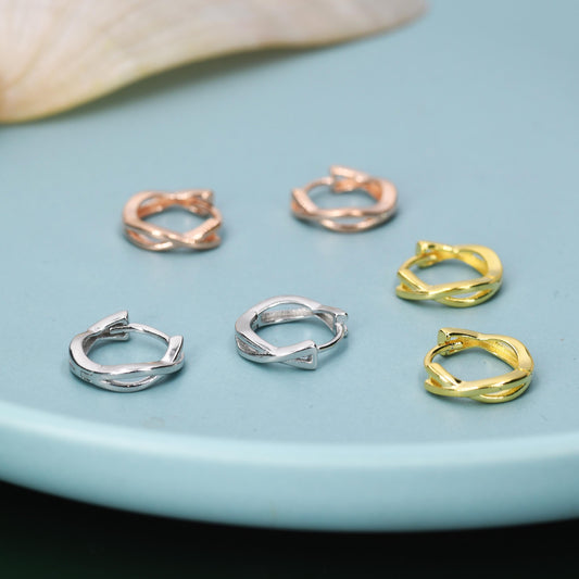 Sterling Silver Delicate Braided Huggie Hoops, Mini Twist Hoops, Intertwining Hoop Earrings, Dainty Huggie Hoops Earrings, Mobius Hoops