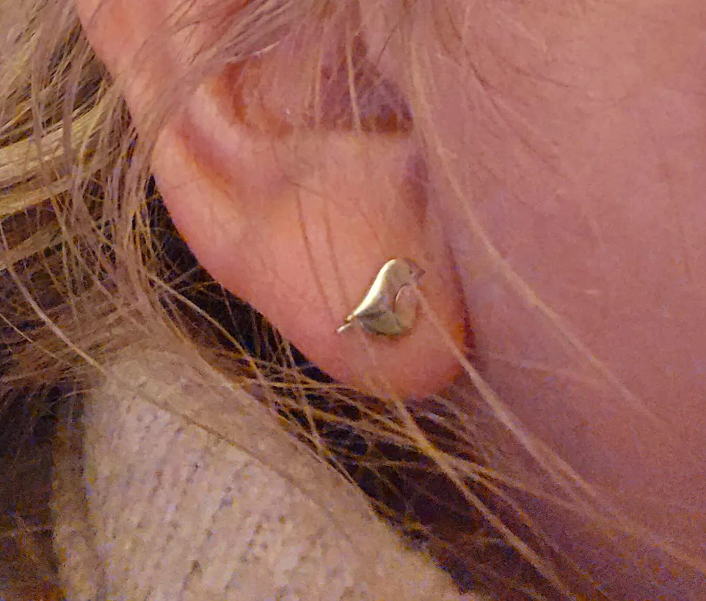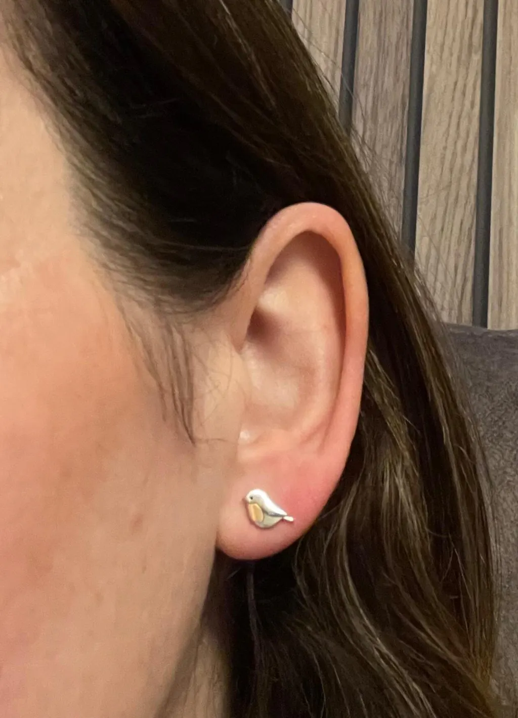Cute Robin Bird Stud Earrings in Sterling Silver, Partial Rose Gold Coating, British Garden Bird Earrings, Nature Inspired Animal Earrings