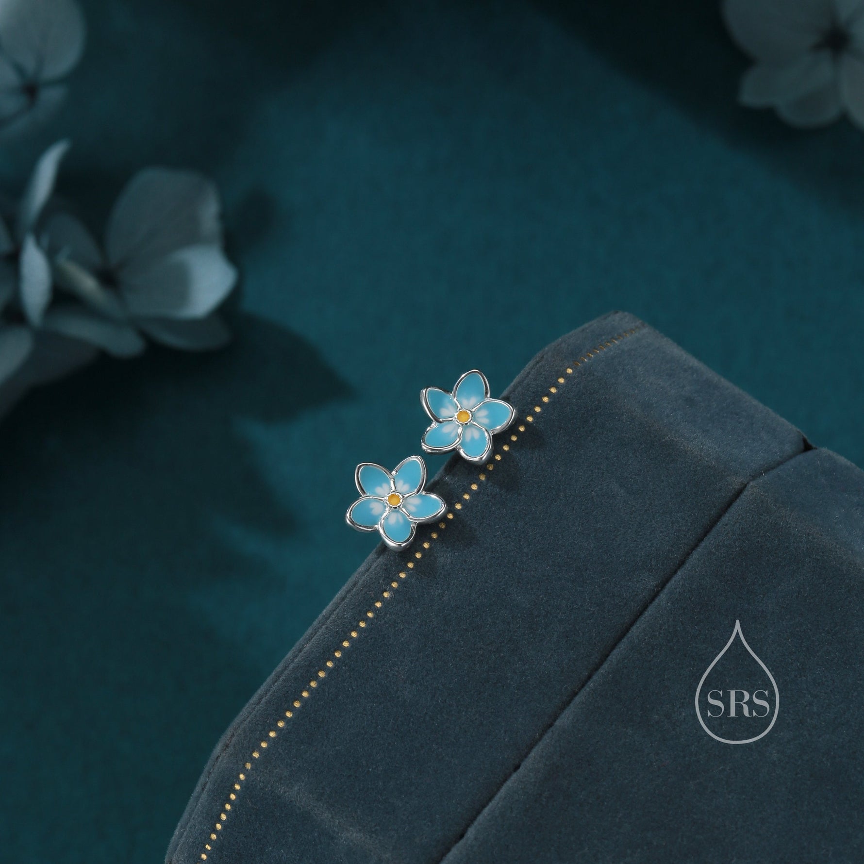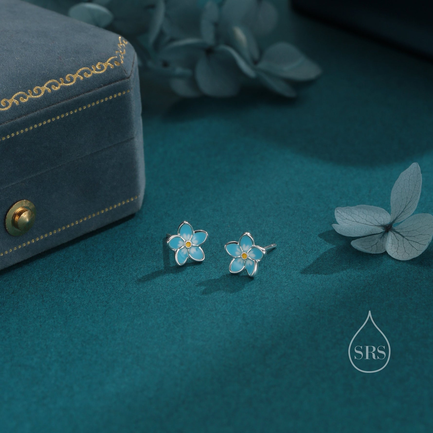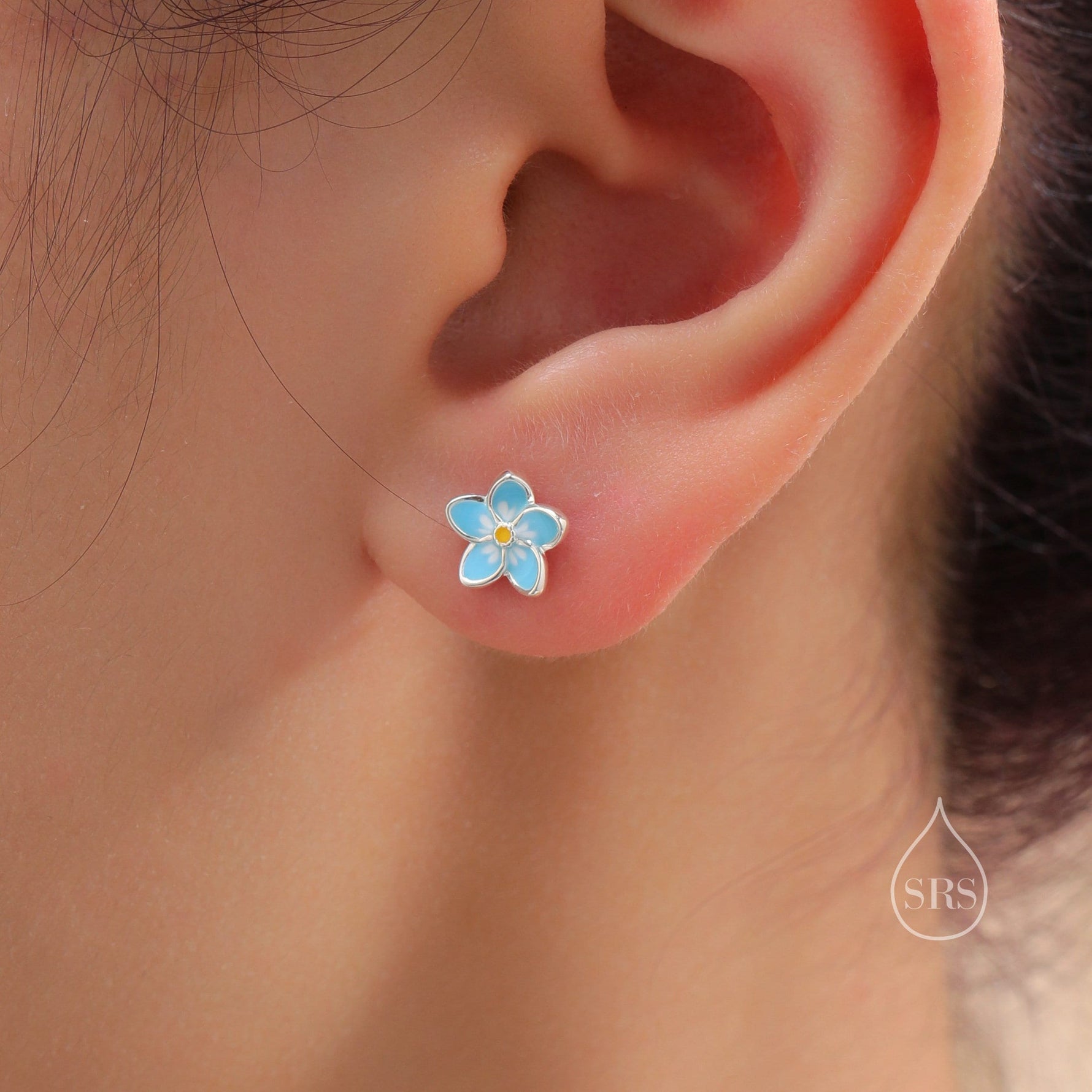 Dainty Forget-me-not Enamel Stud Earrings in Sterling Silver, Flower Earrings, Blue Blossom Earrings, Forget me not earrings
