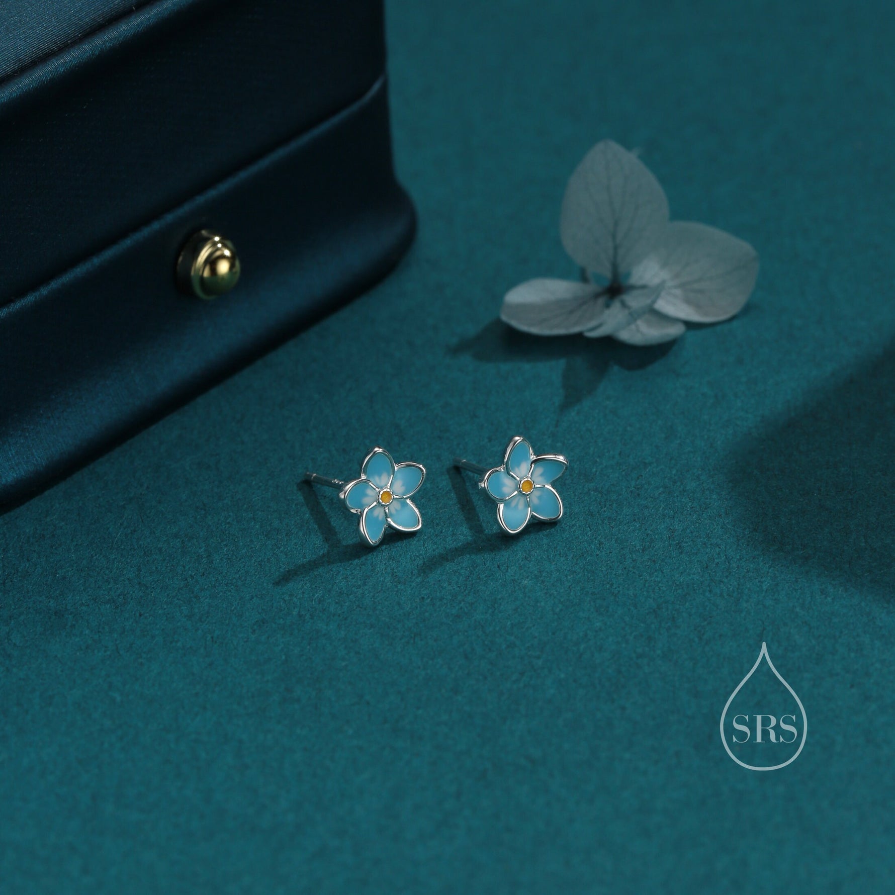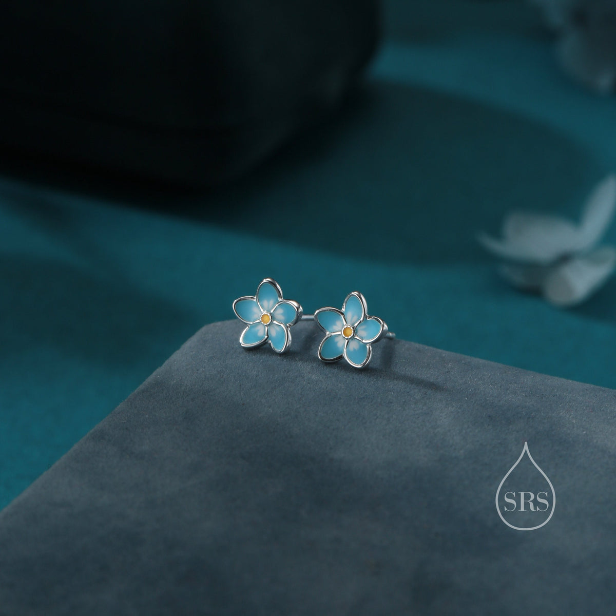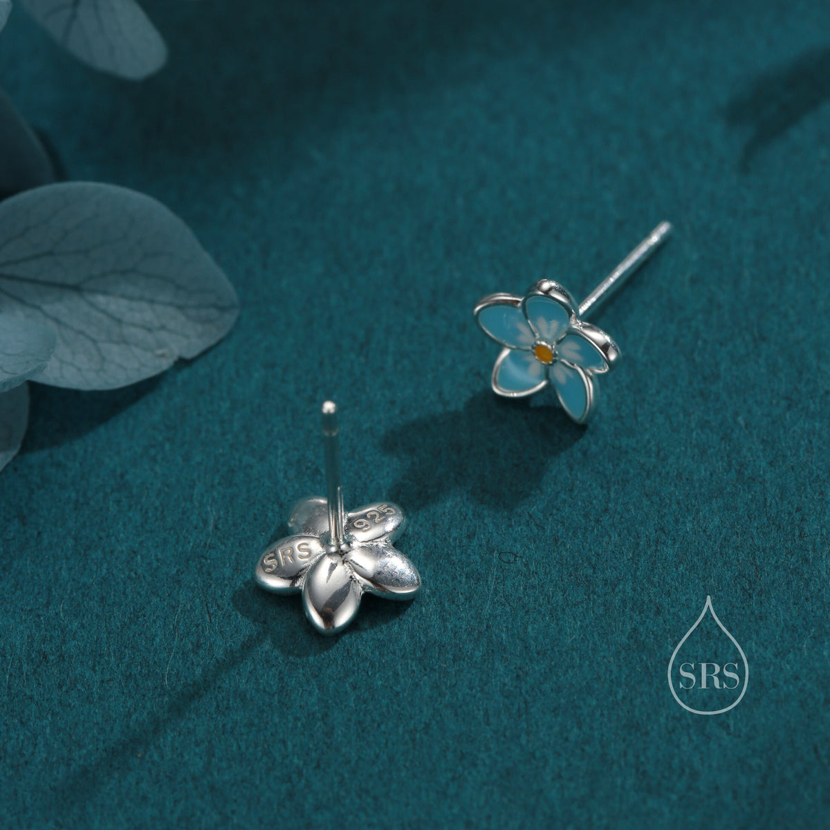 Dainty Forget-me-not Enamel Stud Earrings in Sterling Silver, Flower Earrings, Blue Blossom Earrings, Forget me not earrings