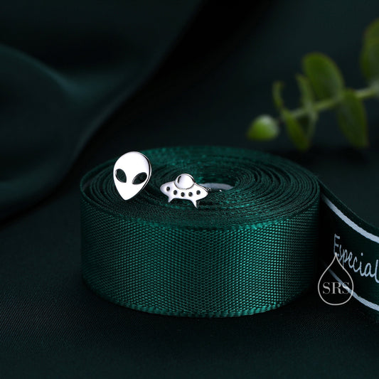 Alien and UFO Mismatched Stud Earrings in Sterling Silver, Silver or Gold, UFO Earrings, Fun and Quirky Jewellery