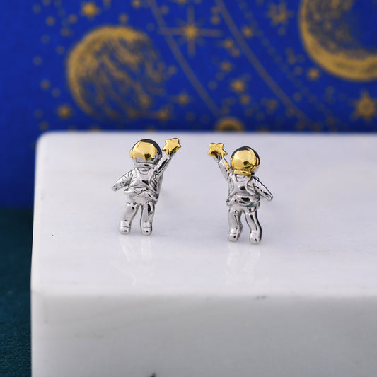 Extra Tiny Spaceman Astronaut Stud Earrings in Sterling Silver - Miniature Space Earrings - Planet Earrings - Whimsical and Pretty Jewellery