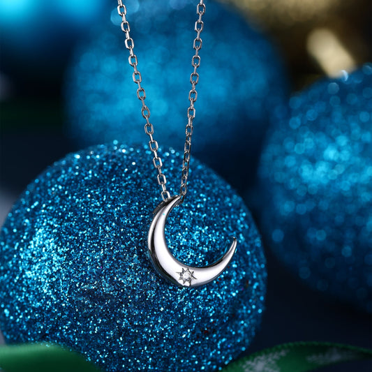 Crescent Moon with Starburst CZ Necklace in Sterling Silver, Silver or Gold or Rose Gold, Moon Necklace, Moon Pendant, New Moon Necklace