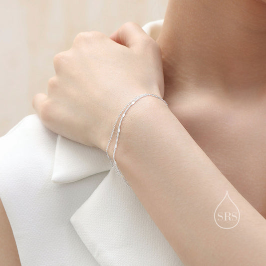 Double Layer Bracelet in Sterling Silver, Dainty Chain Sparkle Chain Bracelet, Silver or Gold or Rose Gold