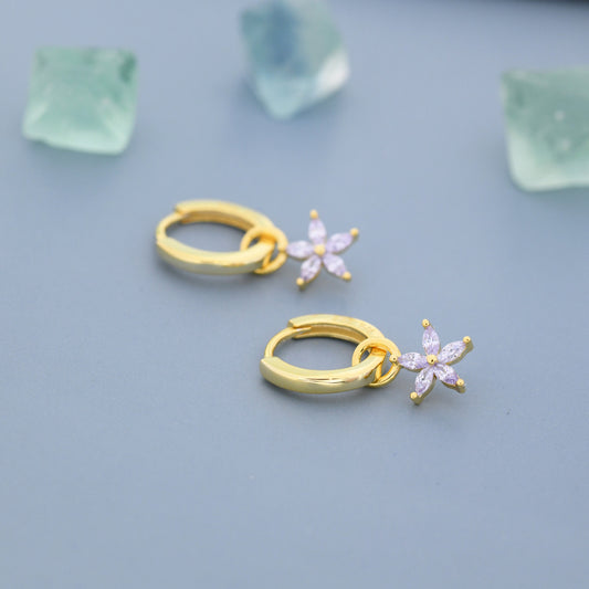 Lilac Purple Flower CZ Huggie Hoop in Sterling Silver, Silver or Gold, Minimalist Simple Hoop Earrings, Detachable and Interchangeable