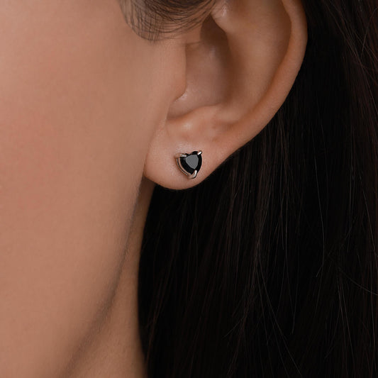 Sterling Silver Black Onyx Heart Stud Earrings
