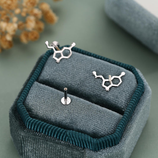 Happiness Molecules Dopamine 16G Flat Back Labret Earrings in Sterling Silver