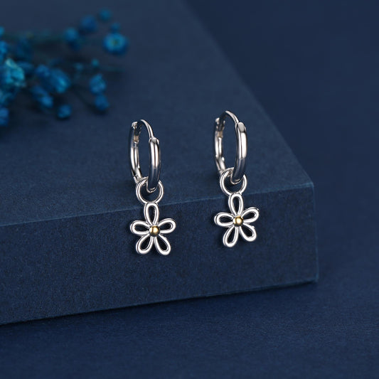Sterling Silver Daisy Flower Charm Hoop Earrings