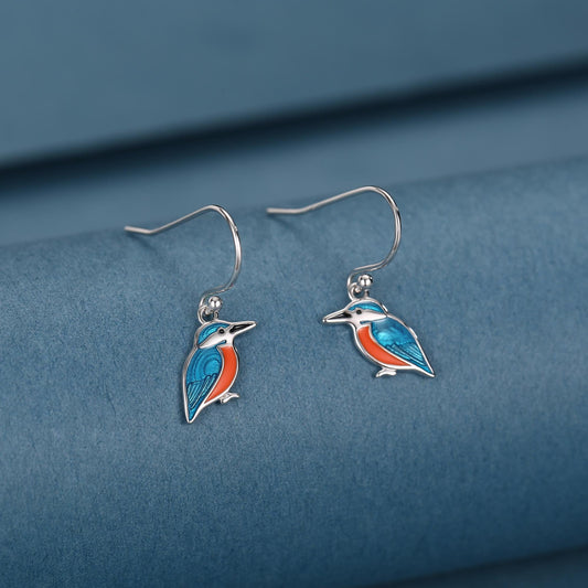 Sterling Silver Kingfisher Enamel Drop Earrings