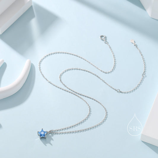 Sterling Silver Aqua Blue CZ Star Pendant Necklace, Silver or Gold, Blue Star Necklace